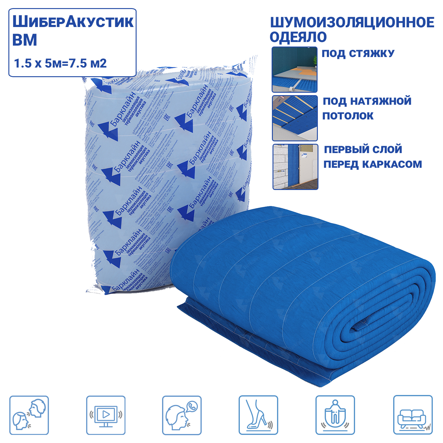 Звукоизоляционный мат Шибер Акустик ВМ 1,5х5 м (7.5 м2)