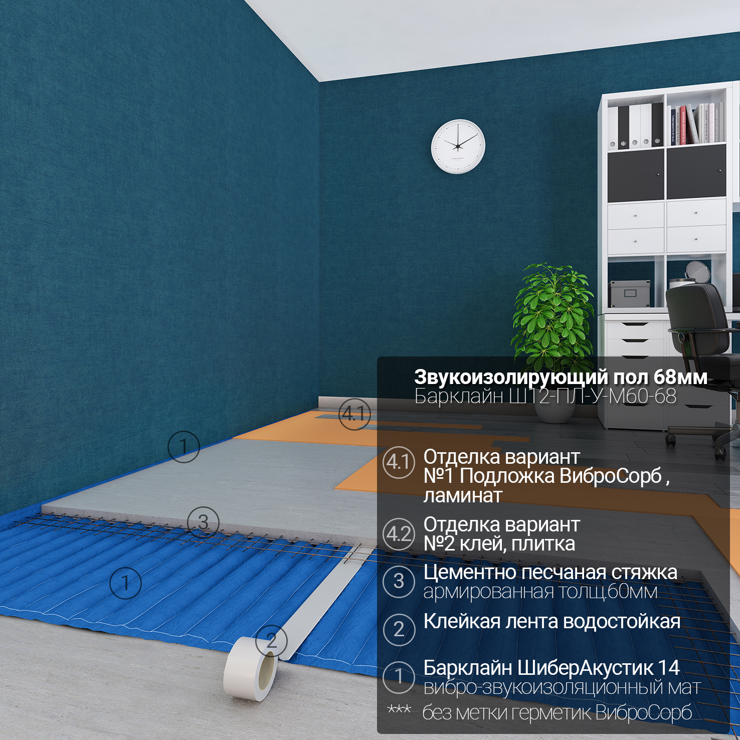 - Звукоизолирующие облицовки пола