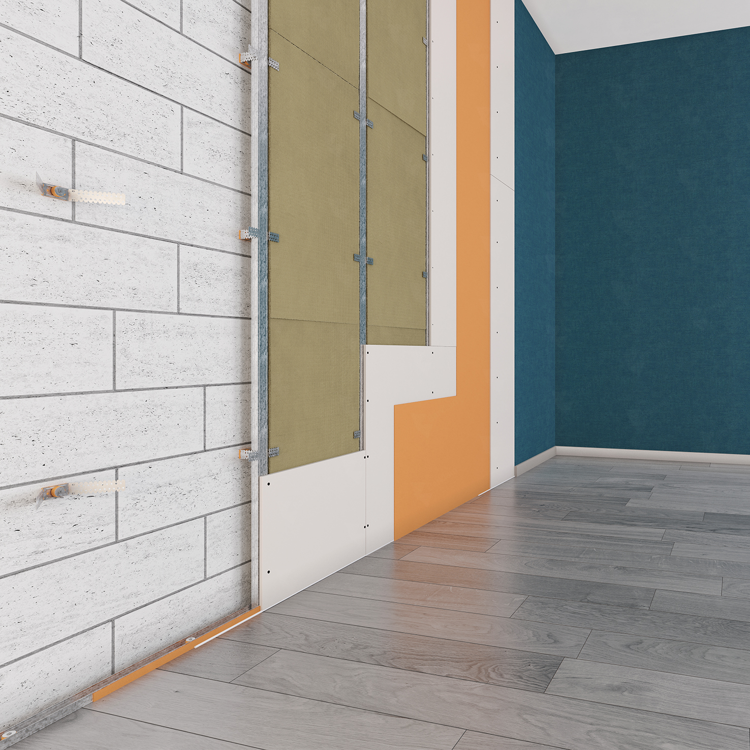 - Разделительный слой листовых материалов (ГКЛ, ГВЛВ, ОСП, другие виды) в конструкциях облицовок стен, потолка, перегородок на каркасе