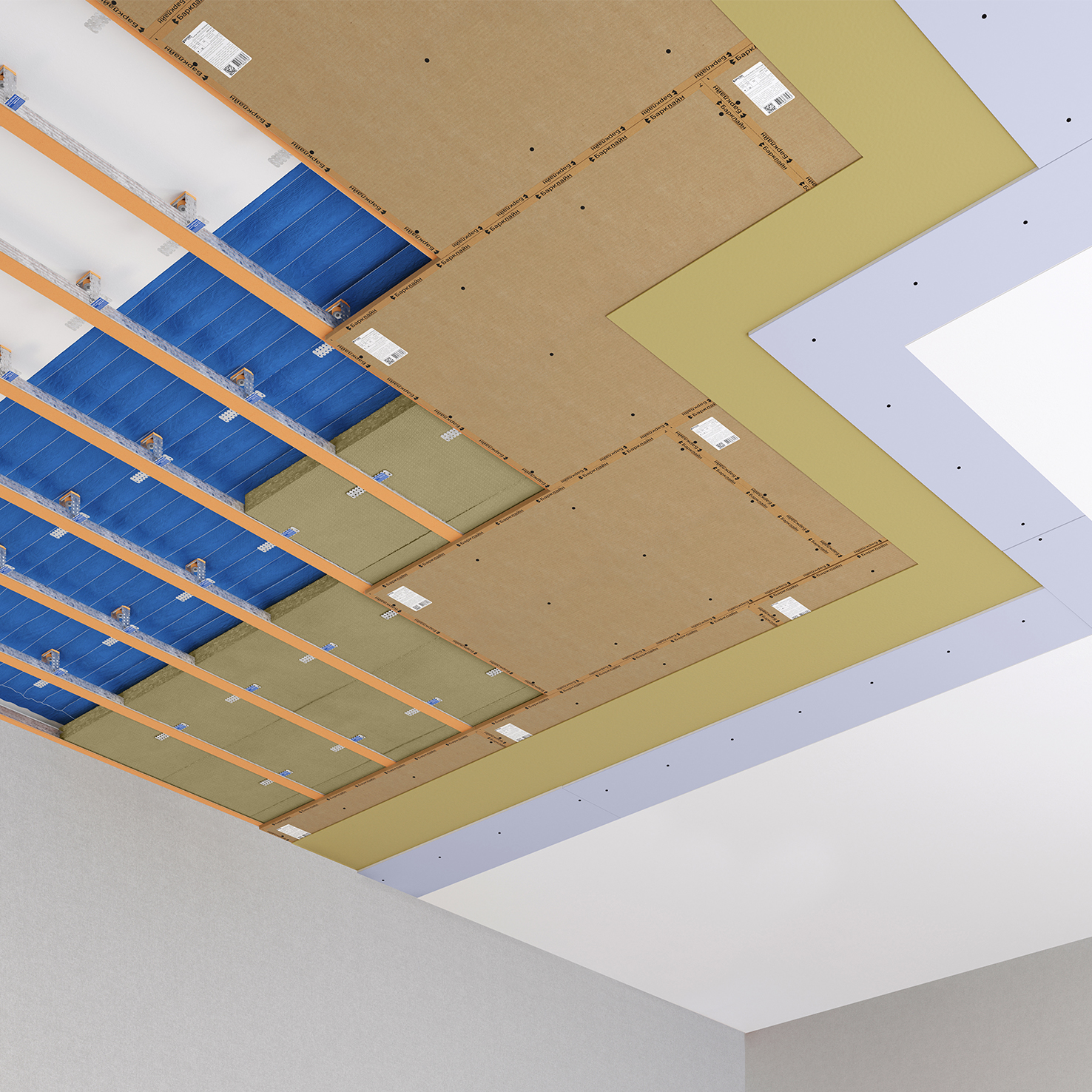 Каркасная система звукоизоляции потолка «Барклайн Базовая Мембрана Кварц Плюс»