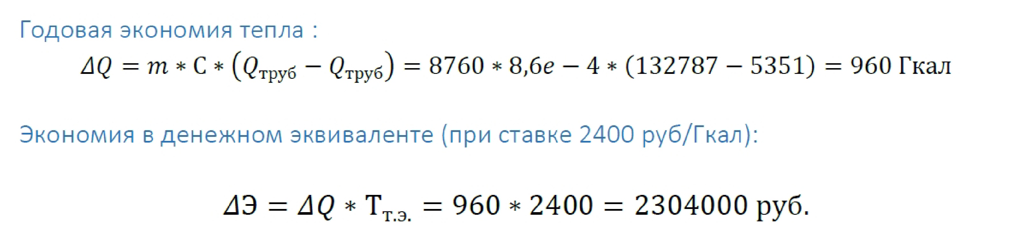 Пример выдержка из расчета , показывает экономию при эксплуатации в годовом исчислении: