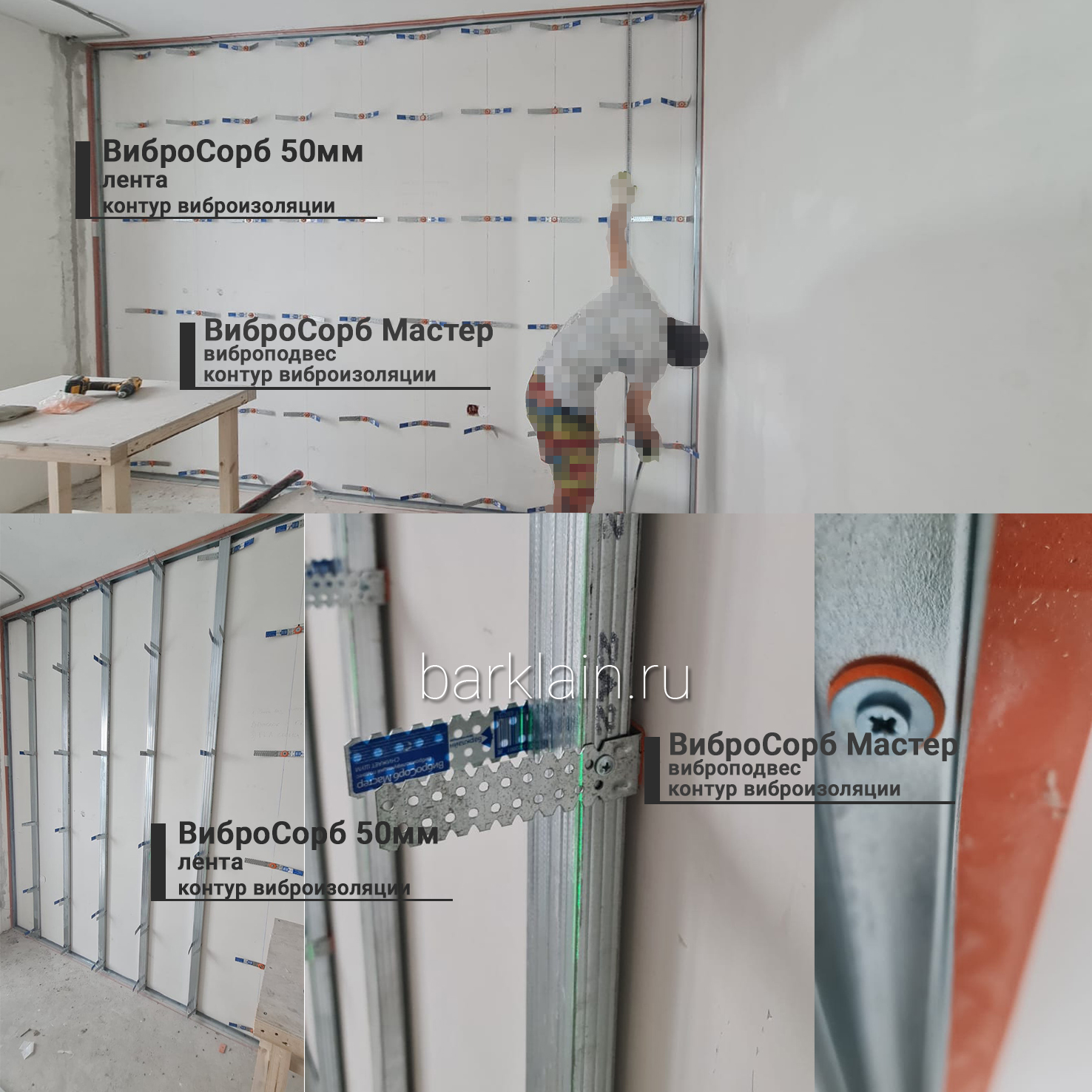 Подготовте отрезки профиля ПП27х28. Установите Виброизоляционную ленту ВиброСорб 50мм на профиль ПП27х28, так чтобы крепежная площадка профиля покрывалась полностью, и часть ленты выступала за границу профиля. Установите профиля используя для крепления виброизоляционные шайбы ВиброСорб , шаг установки шайб 400-600мм. Относ от стены расчитайте по толщине звукопоглощения, инженерных коммуникаций.