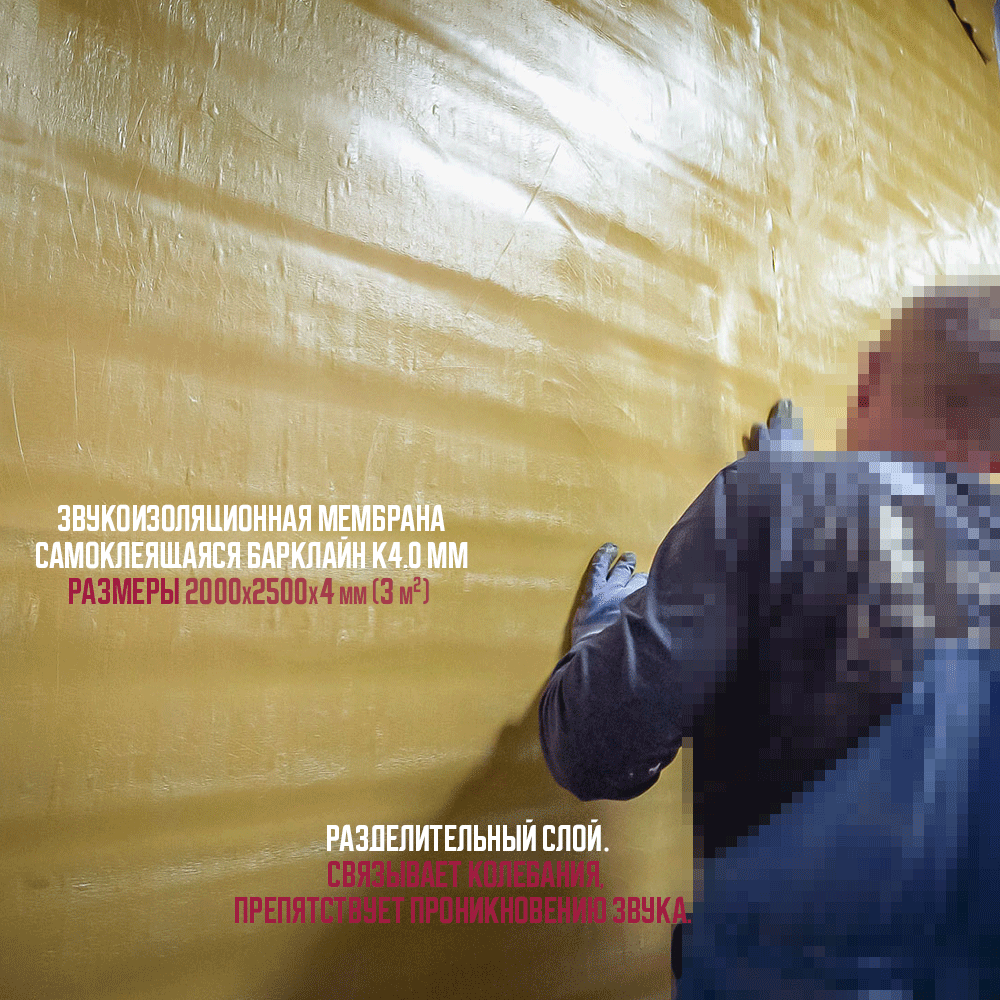 4. Непосредственно монтаж звукоизоляционных мембран Барклайн К 4,0 – высокоэффективные мембраны, утяжеленные минеральным наполнителем, применяются для связывания колебаний, создания барьера для проникновения звука в помещение и из него - разделительный слой в конструкциях облицовок листовыми материалами.