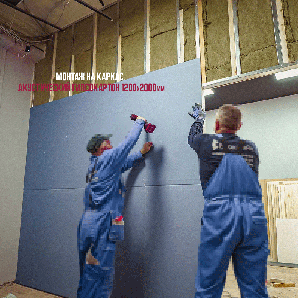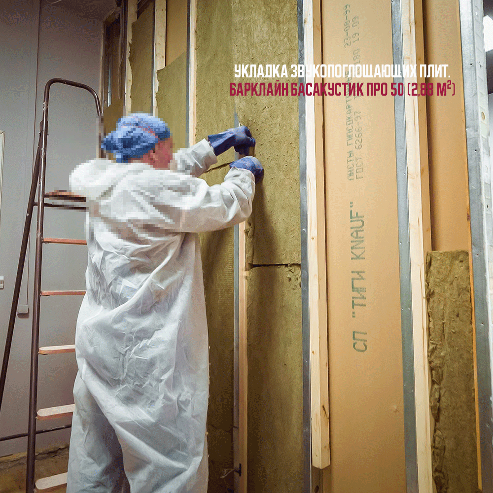 2. Укладка в каркас звукопоглощающих материалов, используются звукопоглощающие плиты БасАкустик ПРО50 (2,88 м2)