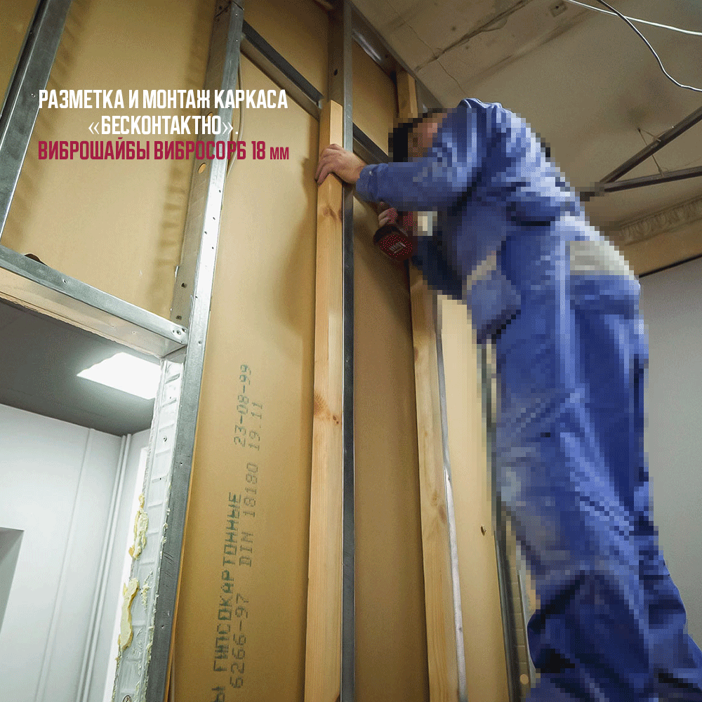 1. Сборка каркаса «бесконтактно» с использованием виброизоляционных шайб ВиброСорб 18 мм